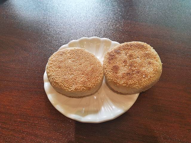 麻酱烧饼,两元一个,个头儿大,外脆里香,面香味儿加上麻酱香味儿再加上表皮的芝麻香味儿,没有吃过这么好吃的烧饼了,亲眼看到边上的老太太打包十五个带走。
