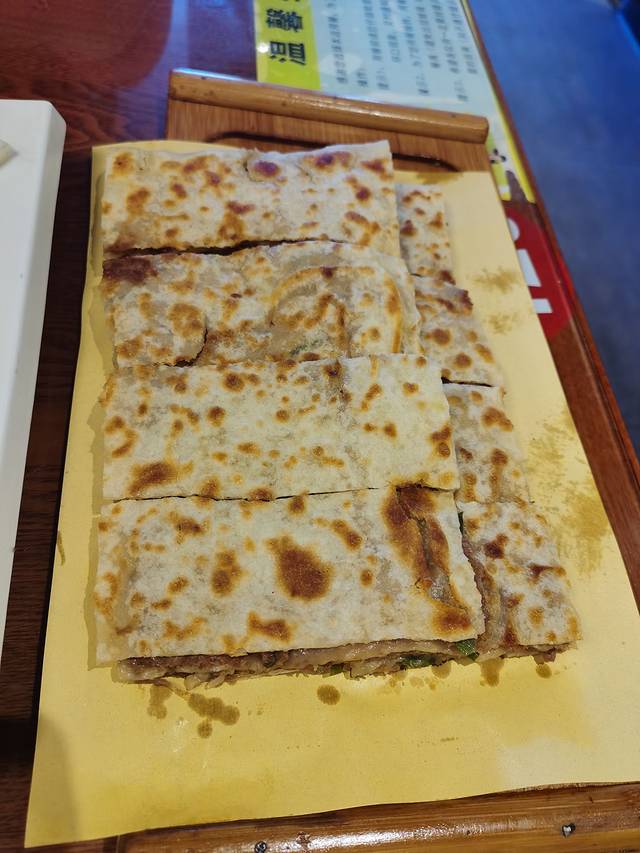 压轴的肉饼隆重登场,套餐里的肉饼是牛肉馅的,真是不负众望,肉香夹杂着葱香,没有一丝油腻的味道,不知道是我们午饭晚了还是真的好吃,除去玉米碴粥剩了一点点,一斤八块肉饼,一凉一热两个菜都被我们消灭了,光盘了😊
