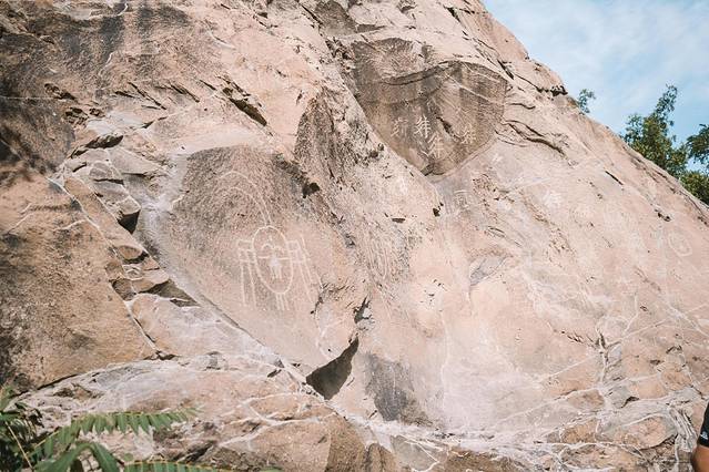 舒服的睡了一觉,第二天起来已经中午,吃了一顿好吃的当地美食,我们又继续旅途,这次的目的地是著名的4A级景区——贺兰山岩画风景区。这边人不算很多,一路过来非常顺畅。沿途的树木很少,路边的山石被大自然鬼斧神工的力量雕琢,特别有视觉冲击力!