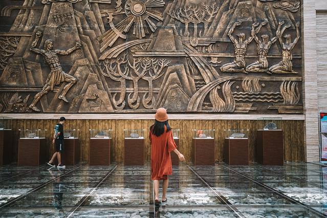 先到达的是银川世界岩画馆,这也是目前世界上规模最大的岩画专题博物馆,对于不了解岩画的人来说,还是推荐大家找解说,需要单独付费(50元)。近距离观察到岩画的图案,了解它们的由来,不由得感叹古人想象力的丰富,而自己又是如此的渺小。路过贺兰山岩画研究基地,我还拓印了一张著名的太阳神岩画,这幅画作为馆内吉祥物一样的存在,通过它能感受到几千年前他们的文化信仰,上面的图案也莫名觉得有点可爱!