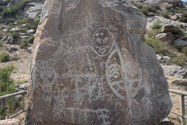 沿着一条干涸的河谷游览,河谷两面的山脚下和半山腰处,偶尔有岩画裸露,供游人观赏和专家研究。