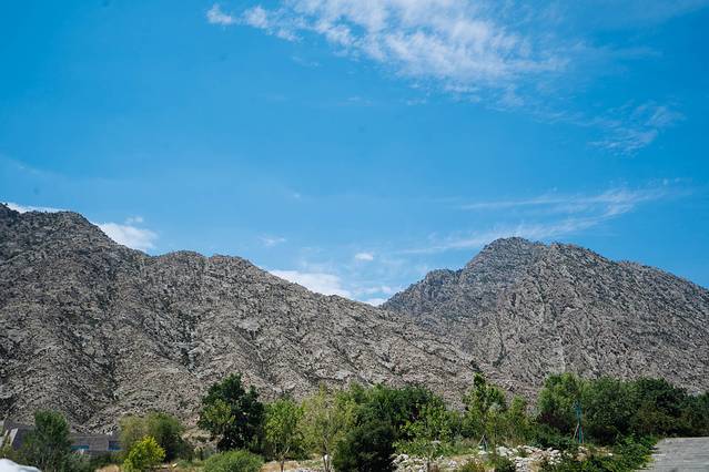 不知不觉中,我们来到了贺兰山脚下,你可别小看这座光秃秃的山,南北走向的贺兰山犹如一幅巨大的屏障,阻隔了腾格里沙漠东行,营造了银川这个“塞上江南”的小气候。