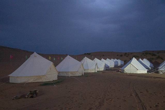 接下来,我们驱车直入沙漠腹地,一路来到了阿拉善左旗的大漠鸣沙露营地,感觉真的是非常刺激的。