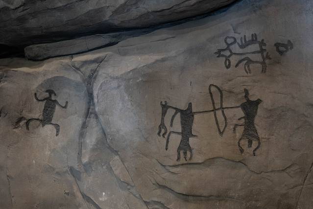 这里的岩画内容大多是人物、动物、狩猎等图案,我们看不出是历史上哪个时期的东西,旁边有游客说这是春秋战国时期到西夏时期的古人杰作