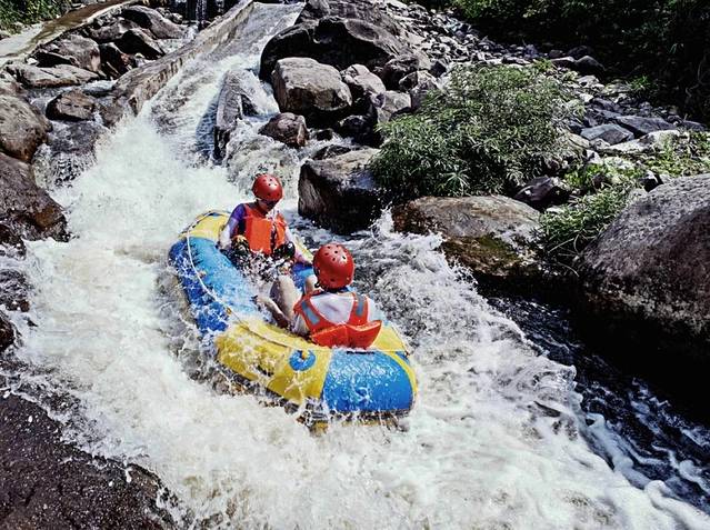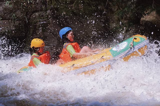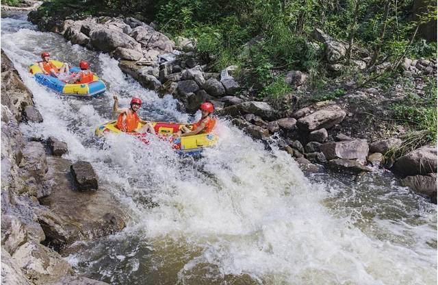 3. 河道分为上下两段。上段为勇士漂流,落差最高达15米,惊现刺激失重感十足;下段亲自漂流,水流平缓水域宽阔,竹林悠悠,适合亲子嬉戏、打水仗。