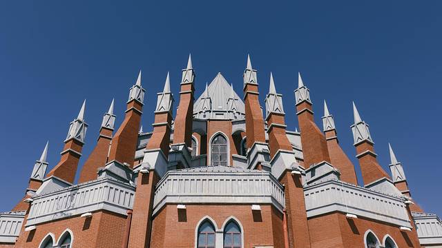 满洲里婚礼宫占地面积3000平方米.主体高37.2米,塔顶高57.8米,总投资约4500万元。建筑风格为简朴、庄重、典雅的哥特式风格。