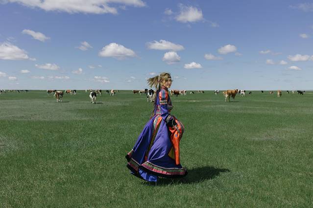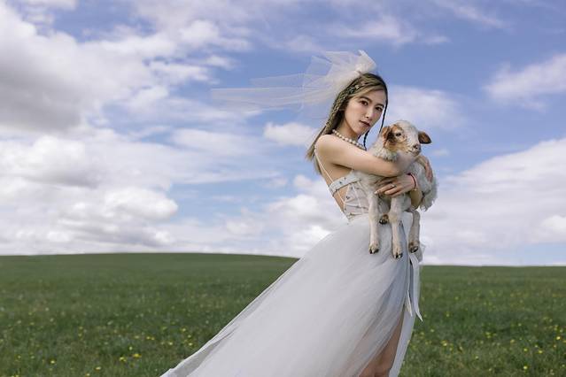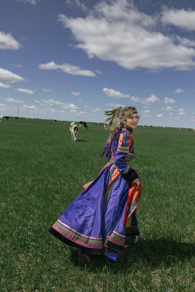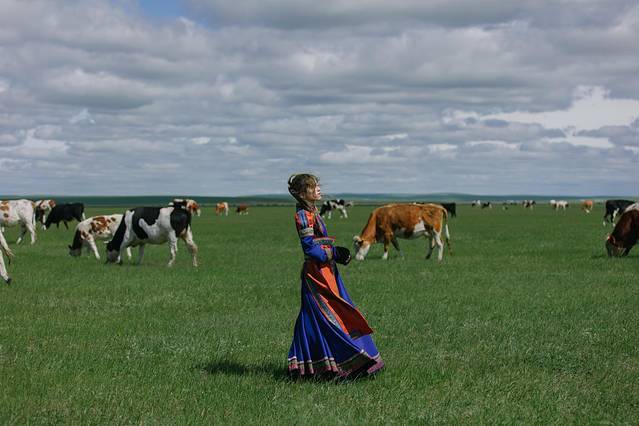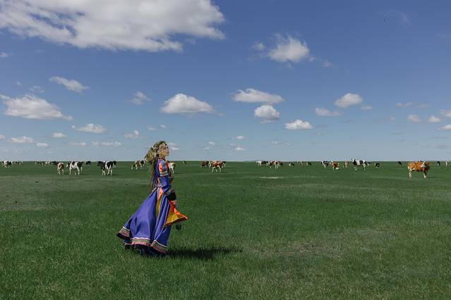 穿上美衣,在草原上奔跑,仿佛和牛羊们更亲近了。但是实际上牛羊们看着你靠近,他们便离你远去,根本就不让你走到跟前与它们互动。只好在远处和它们合影拉~