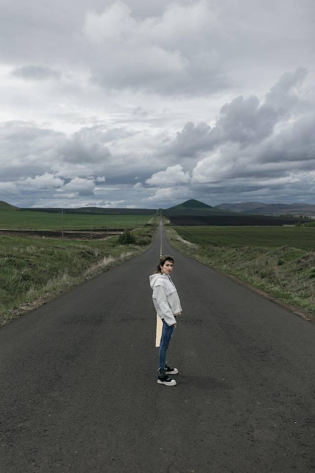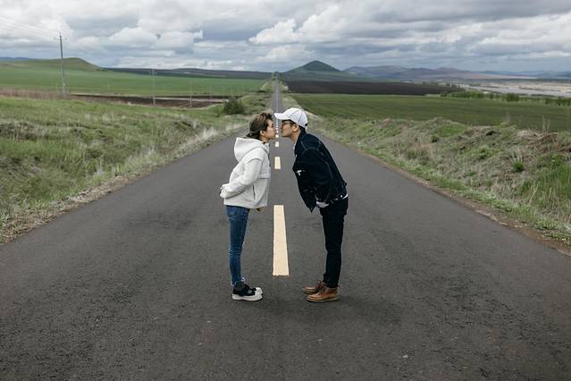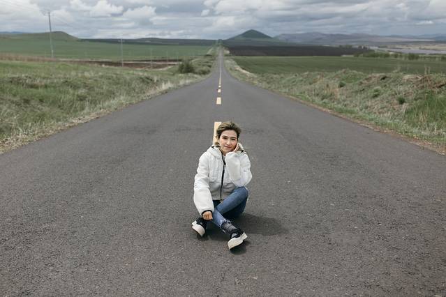 我们在这里等了一会前面拍照的阿姨们,看着她们在路中间飞舞着纱巾。排到我们拍啦~如何拍出不一样的公路打卡照?回头大家可以去看衣刀的视频。