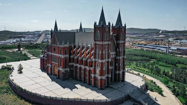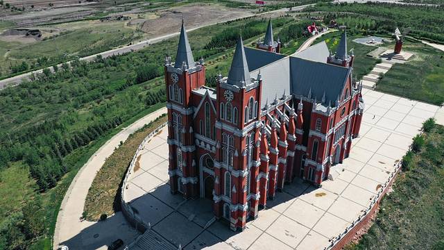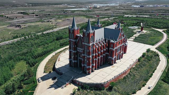 最后一天回程,太阳也早早的出来准备欢送我们。我开心的穿上最后一套小裙子,这次带的裙子总算按原计划完成了它的使命。小齐说我们怎么能不来满洲里婚礼宫看看呢?哈哈哈,这样行程才能圆满呐!下面是小齐航拍的照片~棒棒哒!