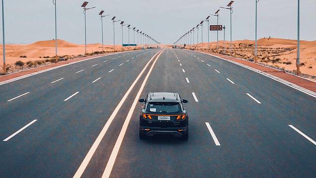 虽然不是第一次见到沙漠,但每每看到这耀眼的金色沙原,还是忍不住惊叹。第五代途胜L驰骋在平坦的沙漠公路上,像是放归山林的猛兽,1.5T发动机带来的强劲动力让这头猛兽奔跑得更加肆意。
