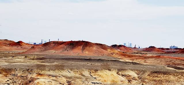 在昌吉回族自治州吉木萨尔县境内,有延绵不断的红色山叫火烧山。这里的土地感觉像被火烧过一样,是一片赭红色,环顾四周几乎看不到其它色彩。