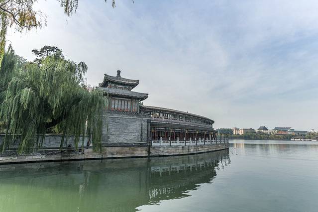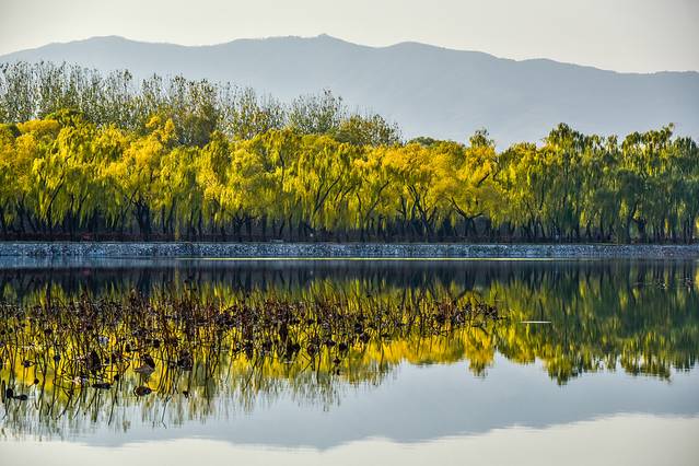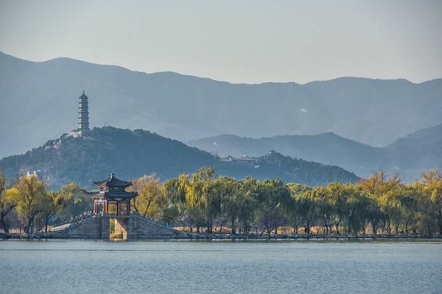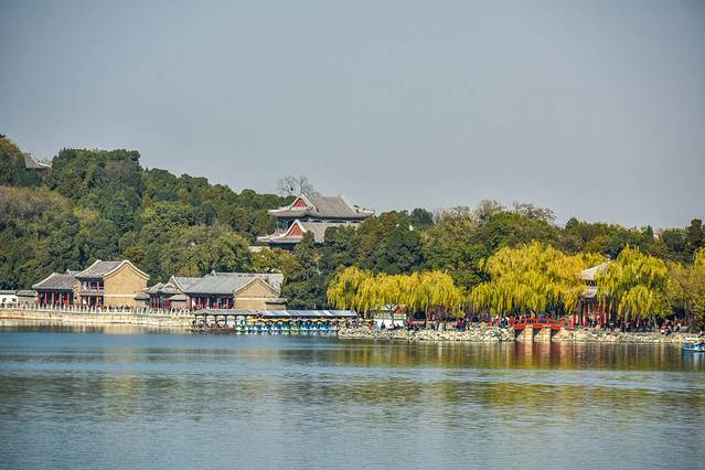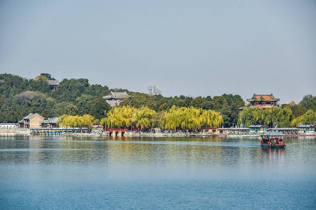 深秋的颐和园美得如此诗意、颇有一番江南的情调,尤其是这片昆明湖。湖边嫩黄色的柳树为颐和园的美景增添不少的美丽元素。你们相信这是在北京吗?