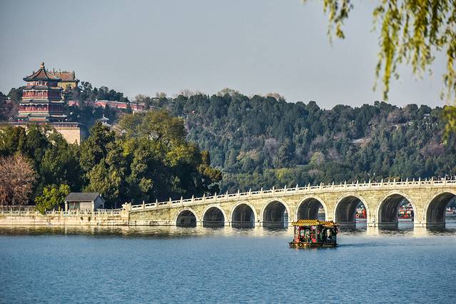 昆明湖地处颐和园内,是颐和园的灵魂之所在。它是明清时期北京的皇家园的观景湖泊,面积占据整个颐和园的四分之三,昆明湖这个名字听起来就很诗意。昆明湖的总体面积是北海公园总面积的五倍之多,是北京市区最大的观景湖。