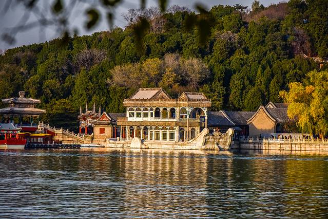 石舫是颐和园唯一的西洋式建筑,最早是万岁山圆镜寺的放生台,乾隆时期修清漪园也就是现在的颐和园时,改台为船并更名为清晏舫俗称石舫。石舫的船身都是大理石雕刻堆砌而成,并融入了西洋建筑艺术,现在的石舫已经成为颐和园颇的一个地标建筑物了,观赏价值与文艺价值较高。