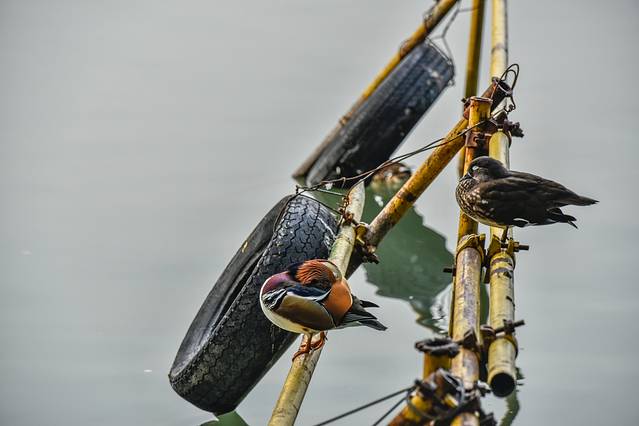 北海公园的环境好,风光秀美,引得很多珍禽到此栖息繁衍。在不经意间就有很多珍贵的东西在这里休息,似乎感受不到外面的喧嚣。站在船头的鸳鸯正睡熟着,山野君不忍心惊扰它们,于是就用长焦镜头远处拍下来了。