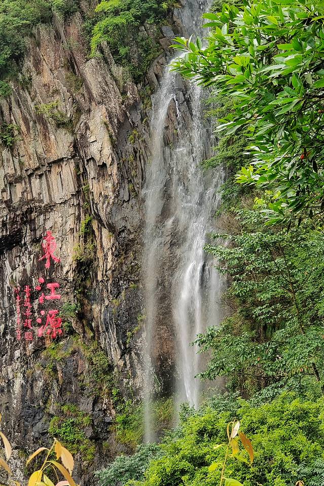东江第一瀑 又称福鳌塘瀑布,因题有“东江源”三字取名为“东江第一瀑”。瀑布落差近百米,气势雄伟。飞瀑两侧峭壁凌空,古木参天。飞瀑前方视野开阔,远处青山叠翠,林海苍茫,令人心旷神怡。