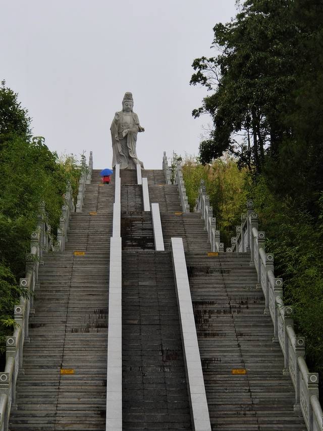 这里有滴水观音菩萨雕像,其宝相慈祥庄严,左手持净瓶,右手举柳枝,屹立在三百山东江源湖畔与对面的思源宝鼎遥相辉映,为天下苍生挥洒甘露。雕像与主峰海拔相称。雕像的形态、手法符合佛教的意义,具备当今美学、建筑学、雕塑学、佛像艺术的时代特色。