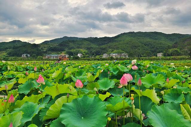 在大畲荷花园景区,十余万亩白莲和红莲,打造出了一条百里荷花观光带。赏莲、采莲、品莲,以及独具荷文化的各种文创,堪称摄影写生爱好者的天堂。