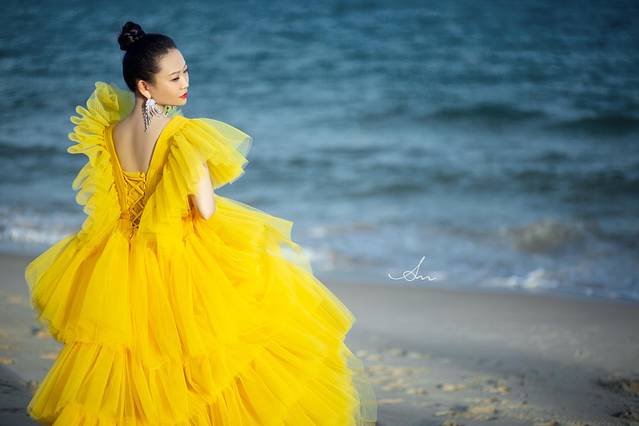这套轻纱是在三亚礼服馆选的,听了负责人的建议,拍照效果很不错。