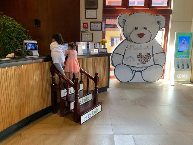 我一直特别喜欢五星级酒店无微不至的服务。其中为了方便孩子们刷脸入住,特意在前台安放了孩子用的小楼梯。我也观察了一下,在各个卫生间为了方便自己孩子洗手也设置了木质梯子。真的超级人性化。