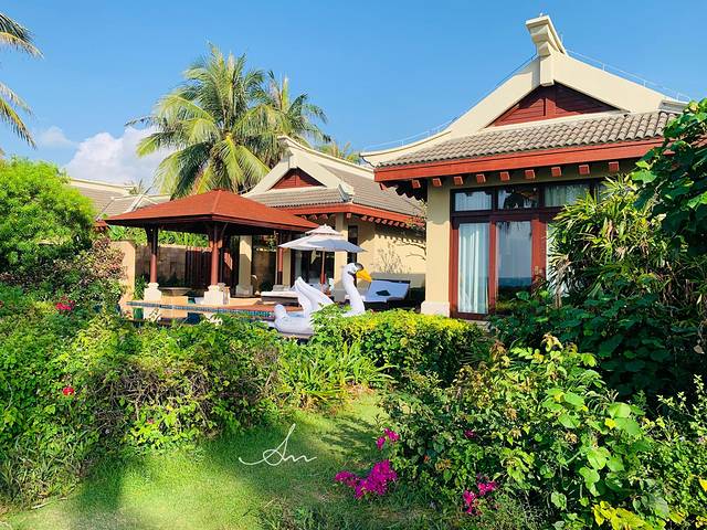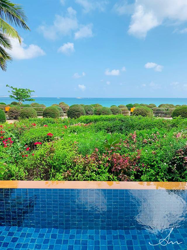 我们婚礼当天入住的丽思卡尔顿8001号别墅华海居外景。开窗见大海,独立泳池,独立庭院,套间可住4人。出门走30米即可到达我们的婚礼现场。