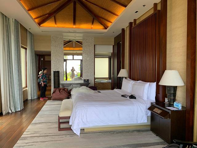 我最早种草的是海南清水湾,蓝湾绿城威斯汀酒店,因为他们的大使套房是高层推窗无边际游泳池的设计。酒店很新内部造景相对新派,很出片。无奈何他们酒店的婚礼套餐只接待30人及以上人数。我特意打电话问了一下,人家可以接待小婚礼团队,但是价格就不再是活动价,算下来还是不划算,果断放弃。后来又看了海棠湾民生威斯汀(我是威斯汀脑残粉所以开始选了两家威斯汀),他们也是同样的问题套餐只接待20人以上团队。然后又看了康年酒店,太阳湾柏悦,万豪等等,最后在丽思卡尔顿的微信商城上看到了我想要的产品,十人的小婚礼团队套餐。包含海滨草坪场地费,新人丽海居别墅,双方父母海景房两间,亲友山景房两间。还有一些接送机折扣等增值服务。但是光是解决10人的住宿就已经让我眼前一亮了。谈妥之后立马下单交钱。