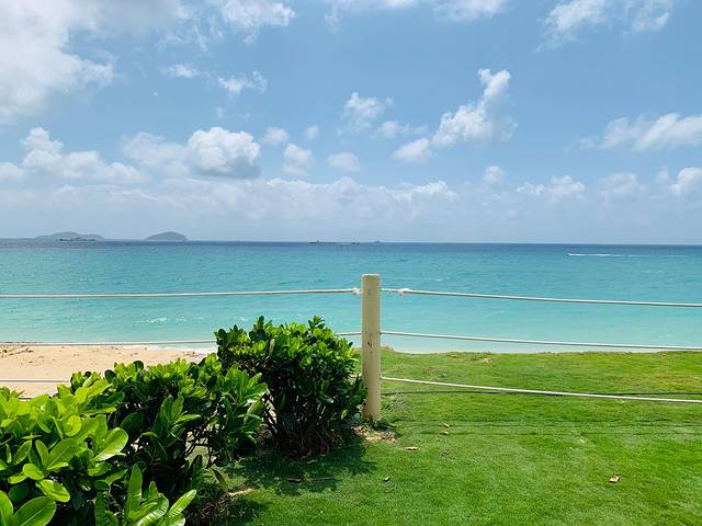站在别墅门口的海景,亚龙湾不愧是天下第一湾,海水渐变色我觉得已经不输国外海岛了。
