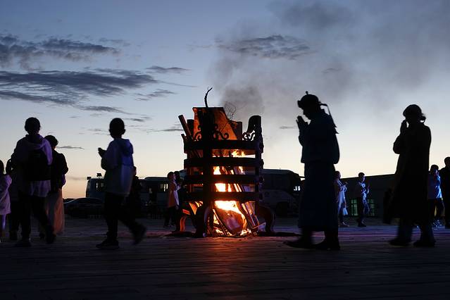 几千年过去了,草原游牧民族还保留着这古老的庆贺方式。 如今在草原景区,都有草原篝火晚会。人们随着悠扬的马头琴声,和蒙古族演员一起围着篝火起舞祈福。然后内蒙古民族演员们观众带来一场精彩的歌舞晚会。蒙古人特色的长调和呼麦,舞动的长裙,热情的欢唱把氛围带到了高潮。
