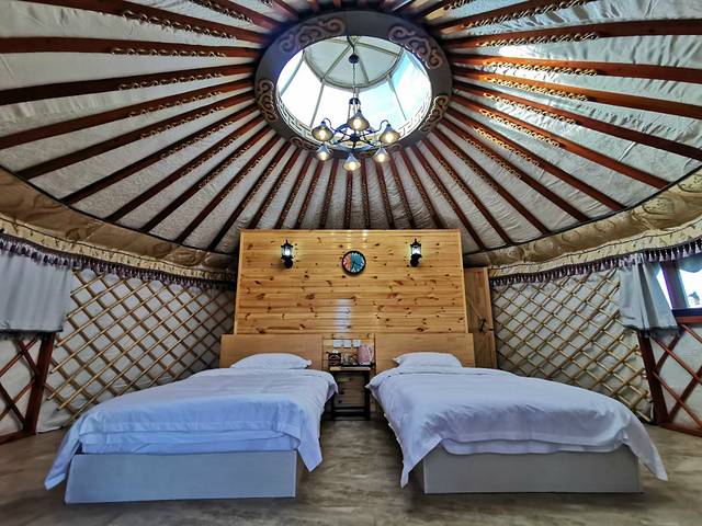 到了内蒙古大草原,也一定要体验蒙古包。这里的民族特色蒙古包外面看起来并不太大,但里面使用面积却非常宽敞。独立卫浴,干湿分离。空气流通,采光也非常好。每天清晨,叫醒你的不是闹钟,也不是梦想,而是头顶泻进来的阳光。木屋、帐篷特色住宿配套条件也非常好,传统的形式,星级的设施,配套淋浴、卫生间条件都很好。