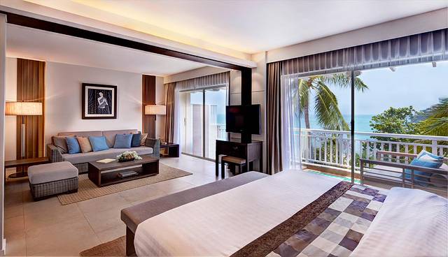 凯璞攀瓦酒店以郁郁葱葱的热带花园为背景,设计独特 而新颖,完全融入了海湾地区的自然美景中,所有房型均可 看到安达曼的海景,客房均配有现代五星级豪华设施及超大 阳台。