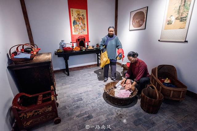 展示馆里的房间都用来做生活展示,产房、普通卧室、绣房、婚房、厨房等主题都得到很好的还原。
