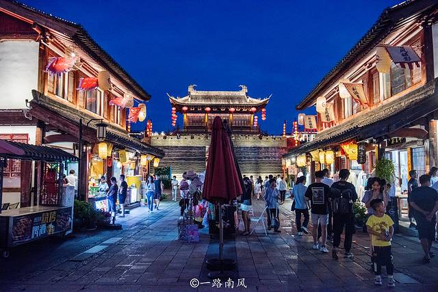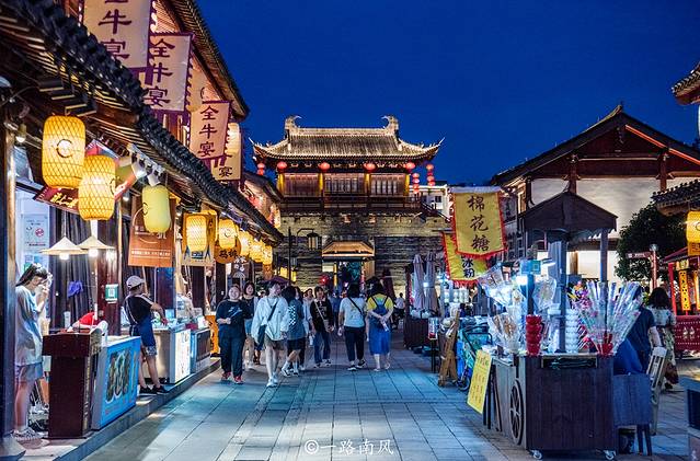夜幕降临,华灯将古色古香的城门楼、牌坊和街市映衬得迷魅动力,熙熙攘攘的人流彰显盛世之繁华。