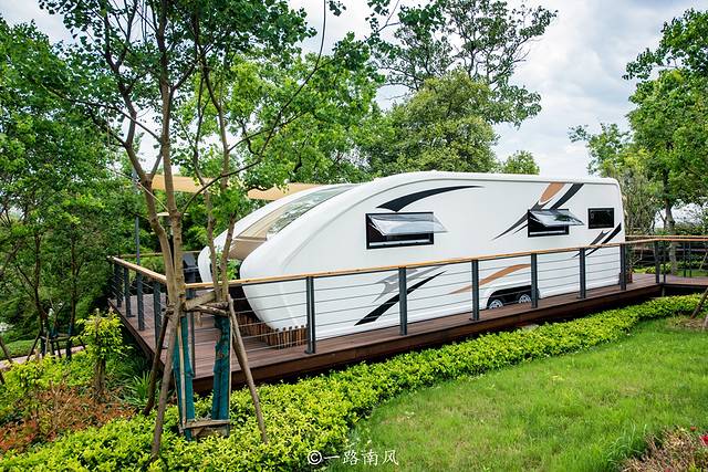 小镇有个房车度假基地,但见绿意盎然的园林里停靠着数辆“房车”,里面是摩登的套房。住在“房车里”,夜观星月,听昆虫鸣叫,想必是一件非常惬意的事情。