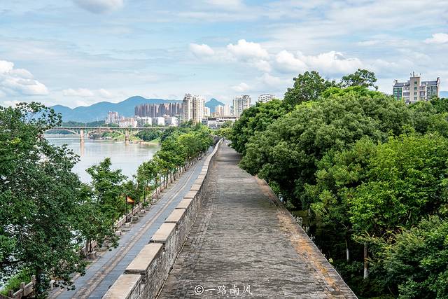 赣州古城墙长3.6公里,既是古代的军事堡垒,也是防洪墙,城墙外面的章、贡两江相当于护城河。