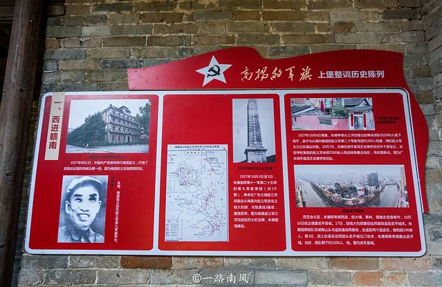 这是一个红色教育基地,在1927年11月上旬,朱德、陈毅、王尔琢率领在大余整编后的南昌起义部队“国民革命军第五纵队”纵队部及主力600余人由大余进入崇义上堡进行军事整训,史称“上堡整训”。