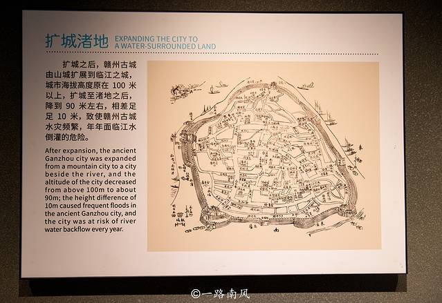赣州原本是一座山城,扩大规模之后一路延伸到江边,城市的海拔高度也从100米降到了90米,这个落差使古城频繁受到水灾的侵袭,百姓苦不堪言。