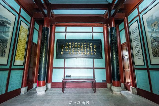 这座三层古式建筑飞檐斗拱,画梁朱柱,文天祥、郭沫若等人都曾登台题过诗。