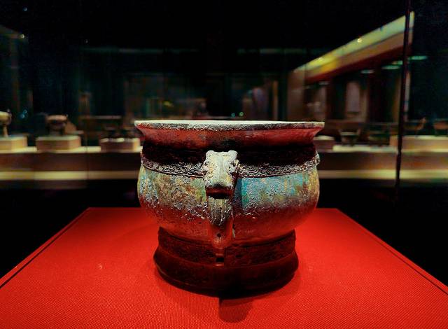 铜陵博物馆近距离参观饕餮纹斝的镇馆之宝。