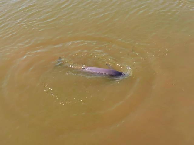 这里有专业饲养江豚的师傅,每天下午4点之前会给江豚投食,所以如果想要看到江豚,一定要记得下午早点去。投食的食物是草鱼,大约半桶的容量。我来的不巧,江豚似乎不怎么饿,尽管饲养员投喂了它们平时最爱的草鱼,但它们大部分都无动于衷。没有看到江豚在水中跳跃,只能看到一些背影,有些遗憾,但还是挺惊喜的,这可是人生第一次近距离观看江豚呀!