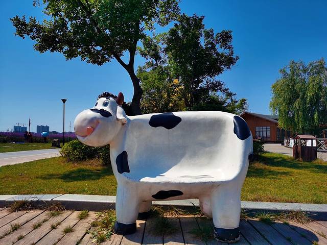▲这是在铜陵西湖湿地公园的某个角落,蓝天白云下,一头“身体被掏空的”小奶牛努力“营业”着,我甩手就是一个赞,但实在不忍心坐下去。