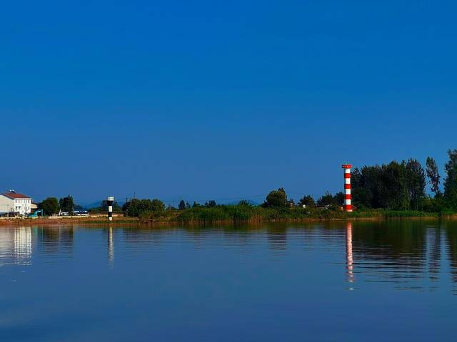 轮渡每40分钟一趟,下午2-3点是菜农的运输高峰期。轮船上站满了过江的人们,他们似乎很淡定,而我却显得格外新奇,四处观看着这里的一切。远处,一高一低的灯塔,黑白相间,白红交错,配着蓝天,极其舒适。