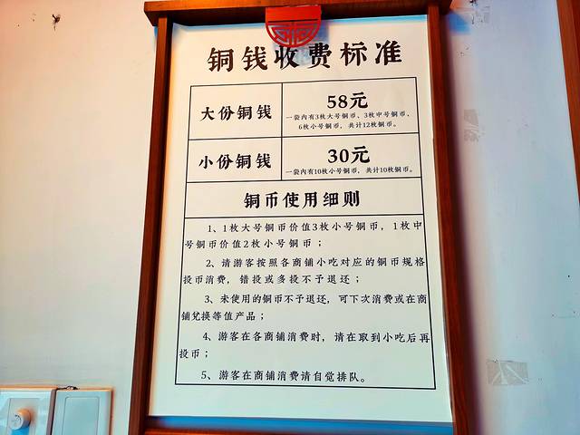美食街的工作人员说这些铜币的含铜量高达60%,用现金兑换后用不完的铜板还可以带回家收藏纪念,颇有意思!