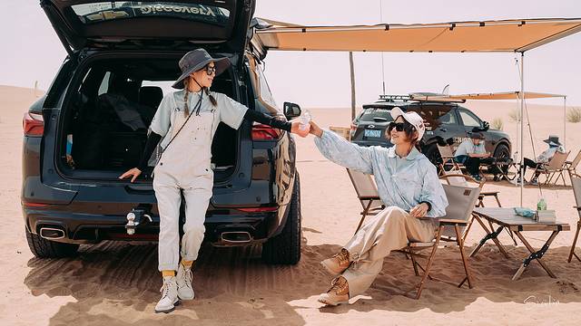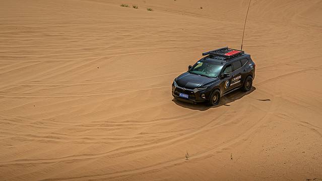 从银川机场落地,在酒店休整一晚之后,一行人一大早便出发前往沙漠营地。在辽阔荒凉的黄沙中,车队自驾是最有安全感的选择。这次自驾的伙伴是雪佛兰开拓者,城市SUV的外观在这沙漠里让人眼前一亮,记得第一次驾训时也是这款车型,在石漠化的砂石地中表现出了优越的越野能力,想必沙漠行驶也不在话下。