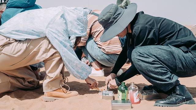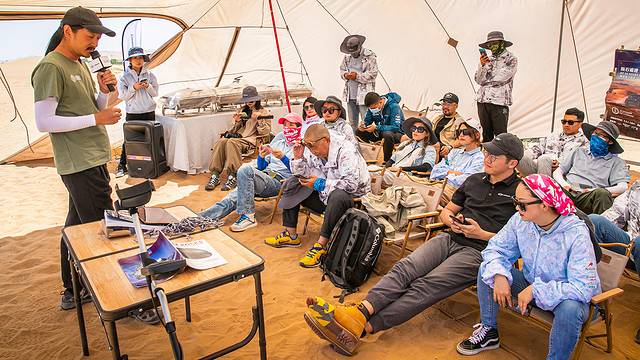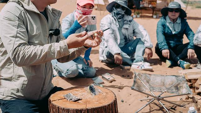 帐篷扎好后,正式进入荒野求生环节,在无人区,掌握基础的野外生存技能十分重要,朱老师细心讲解着野外生存的注意事项,由于荒漠日夜温差非常大,想在夜晚保持体温,除了帐篷以外,第一件事就是想办法生火,Discovery生存专家向我们演示了如何在恶劣的环境下野外生火等技能,干货满满。