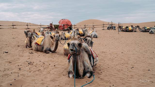 一整排骆驼整装待发,像是要驰骋沙场的战马,它们是这片沙漠的老常客,会带我们巧妙地绕过那些起伏地带。