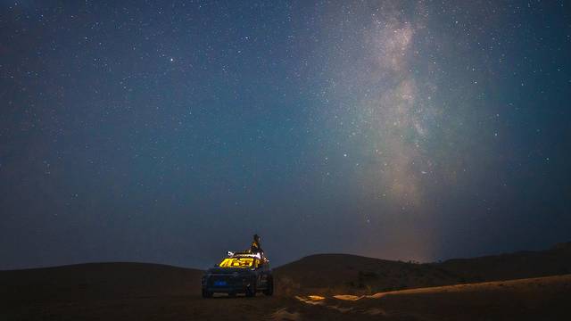 夜幕降临之前,事先把拍摄的点踩好,为拍摄星空做准备。不过由于地方太大,靠双脚是不行的,开着车溜达一圈,寻找到了最佳观星点。不得不说雪佛兰开拓者整车的降噪效果极佳,在崎岖不平的沙地上开,除了油门轰鸣声以外,也没有听到其他异响。在没有光污染的沙漠区,星河遍格外璀璨,夜拍星河很辛苦,需要吹着寒风长时间的等待,一遍遍地调整参数,但每当我看到这样纯粹的星空,又觉得值得。美好的事物总是需要多点耐心,多点执着,最终便不负期望。