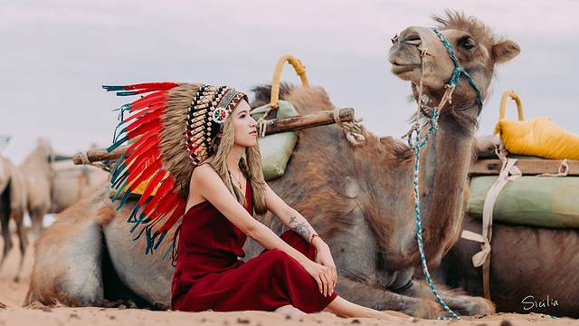 与迪拜沙漠区的骆驼不同,这里的骆驼十分温顺,甚至都不用戴嘴套,挨着骆驼在沙地上盘腿坐下,竟能感受到出奇的安逸。