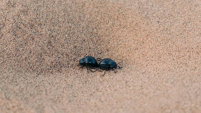 这对没羞没臊的夫妻是纳米布沙漠甲虫,在干旱的沙漠中,这种甲壳虫有着一种独特的获取水的方法,它们的翅膀上有一种超级亲水的纹理,同时还有一种超级防水的凹槽,两者共同合作,可以从外界的风中吸取水蒸汽,当亲水区的水珠越聚越多时,水珠就会沿着弓形后背滚落入沙漠甲虫的嘴中。