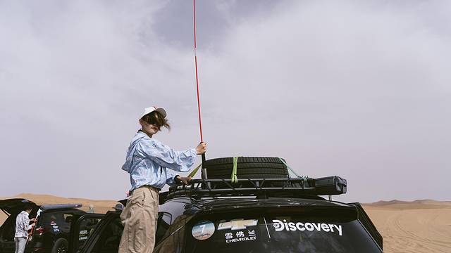 正式进入沙地越野前,先要在车头支一根警示旗,因为沙漠地势起伏,在上坡的视角根本看不到坡的另一边有没有车,所以这面旗起到一个警示作用,大大避免了沙漠交通事故的发生。