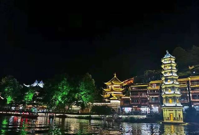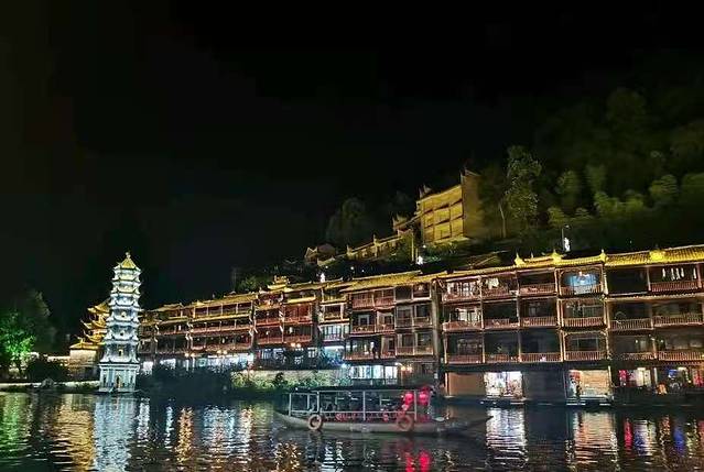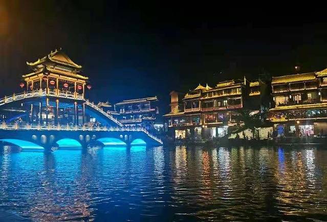 有幸遇到了,凤凰古城的三种状态下的模样:晴天时古朴的古城,阴天时慵懒的古城,还有晚上时苏醒的古城。白天的古城,有一点安静,有一点寂寞。而当江畔,音乐响起的那一刻,古城就彻底醒了过来,夜,来了!江畔的灯光,标志着,明信片一样的古城,最美的时刻,来了。在这里,你只需要拍照就行了,不需要担心拍丑了,你只会后悔一件事,手机像素好像不太好。横屏估计是最好的方式吧,但总觉得装不下,装不下。
